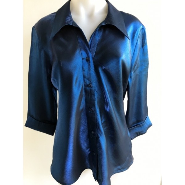 Designed in Australia. Lovely shirt with striking shades of dark blue/mauve that change with light conditions.